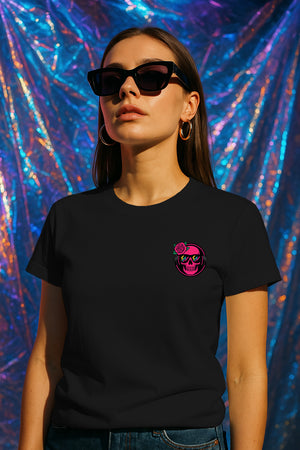 - Statement Graphic: Edgy biker skull with rose, headphones, and neon bolt shades.
