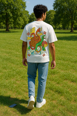 Dragon Turtle & Serpent Graphic Oversized Tee | 240 GSM Terry Cotton