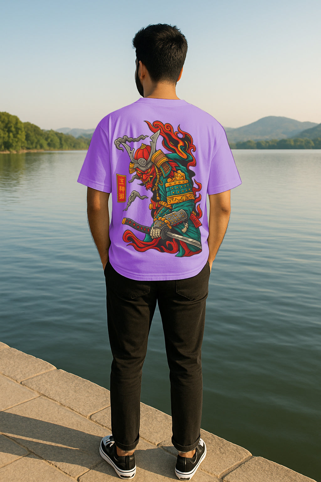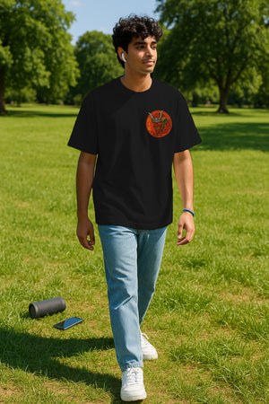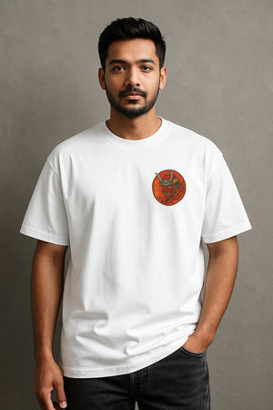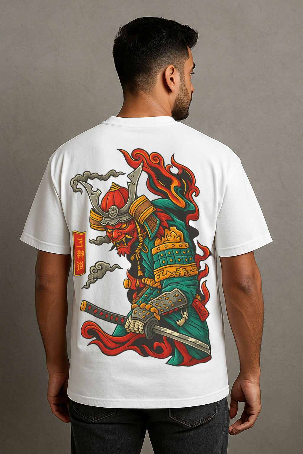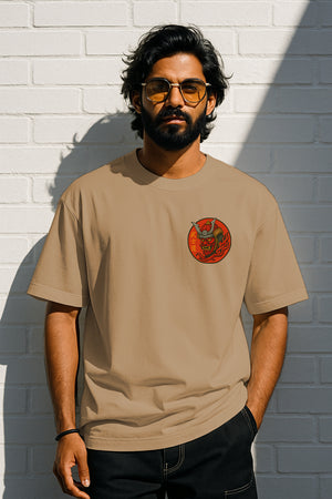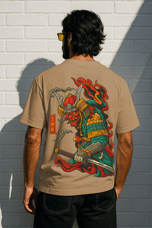Flame Samurai Oversized Graphic Tee – 240 GSM Terry Cotton