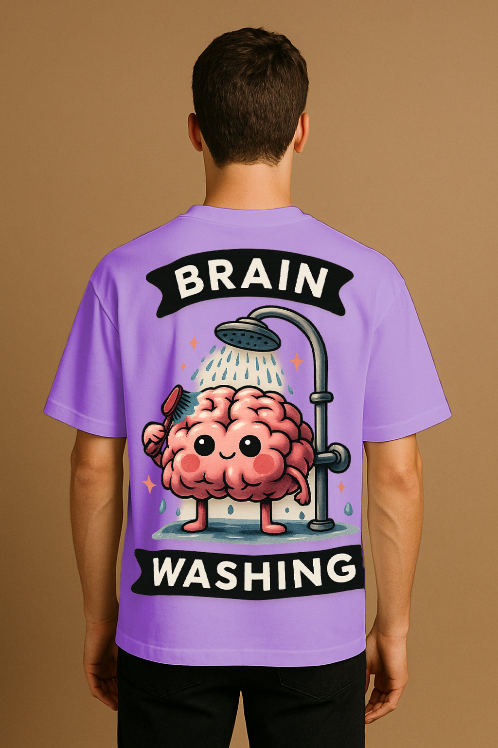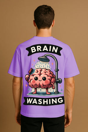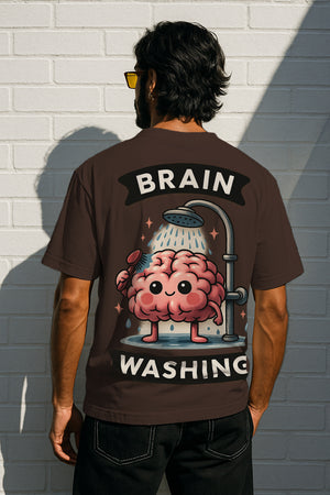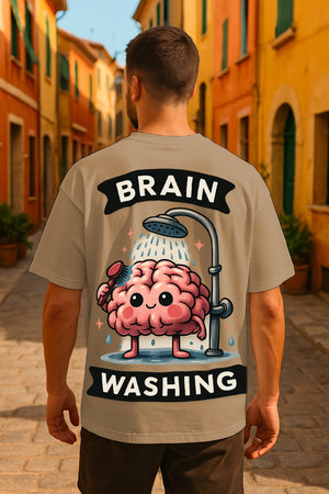 Oversized Brain Washing Graphic T-Shirt – Premium 240 GSM Cotton Streetwear Tee | Funny Cartoon Brain Design for Men