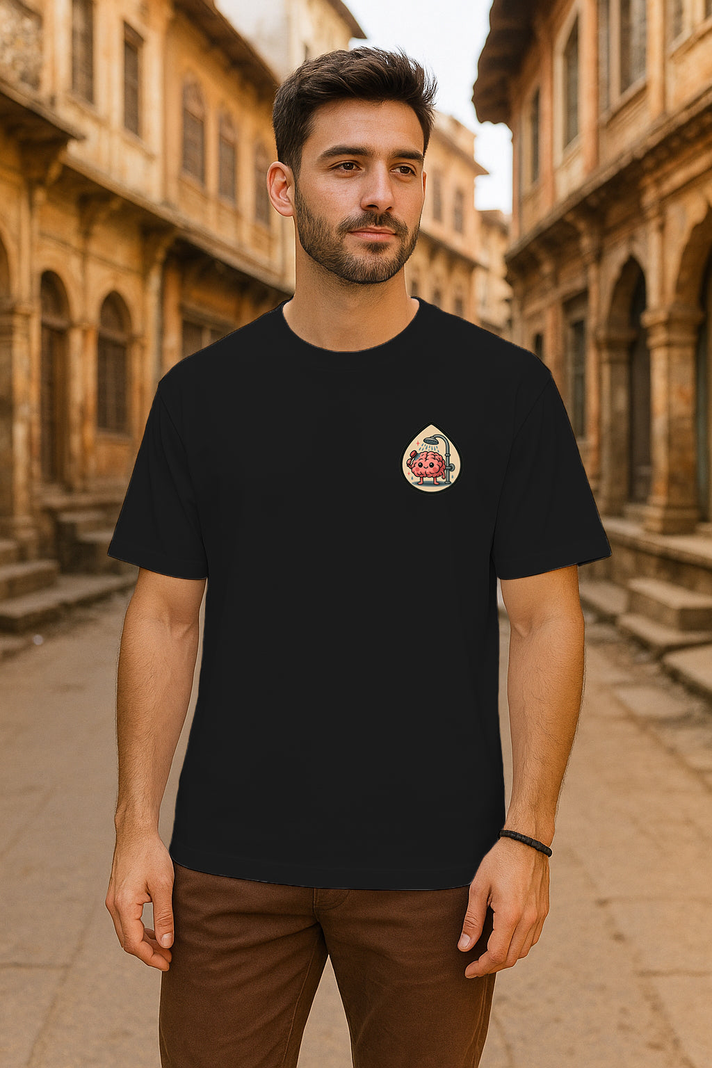 - Front: Minimal chest logo with a mini brain emblem for subtle style.