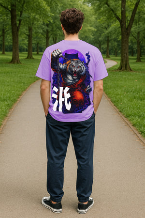 They whisper about a guardian who walks at dusk—half monk, half thunder. When the city grows quiet, the Samurai Tiger steps from the violet haze, wraps the moonlight around his fists, and reminds the lost that courage can be learned. The blade he carries isn’t for rage—it’s for focus. The roar isn’t for fear—it’s for awakening. This tee captures that exact second before impact, when discipline and power become the same breath.