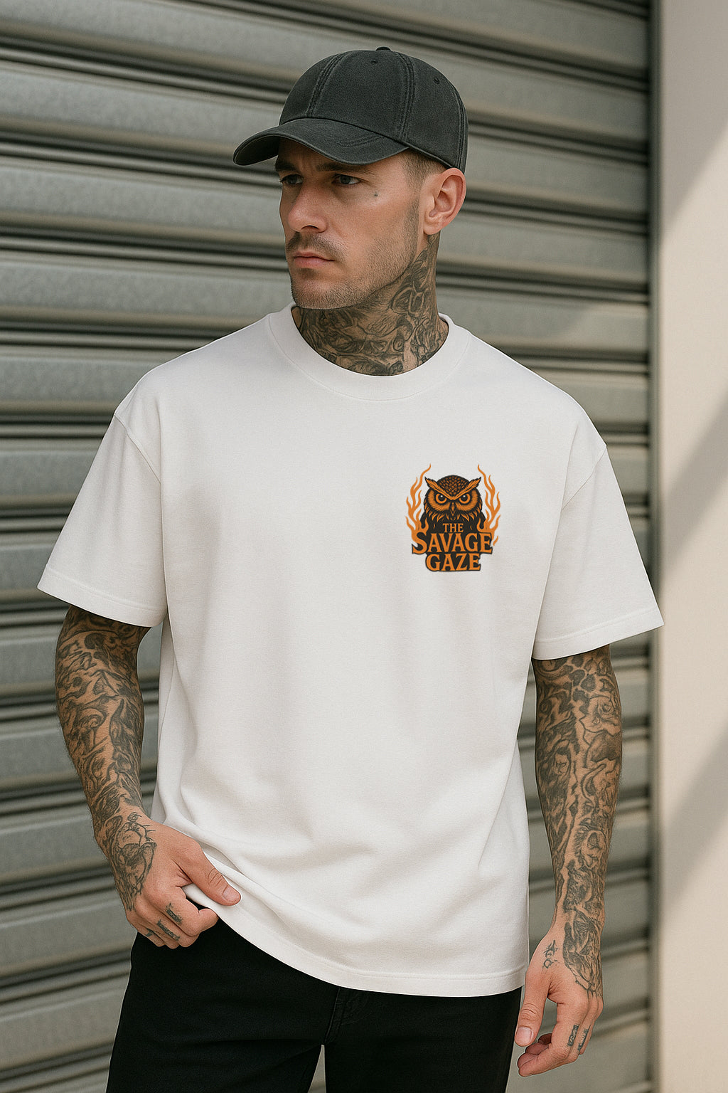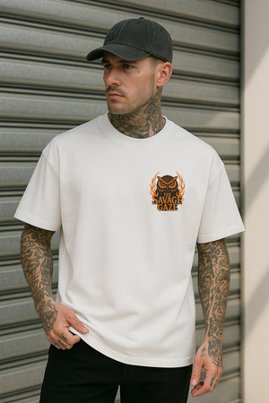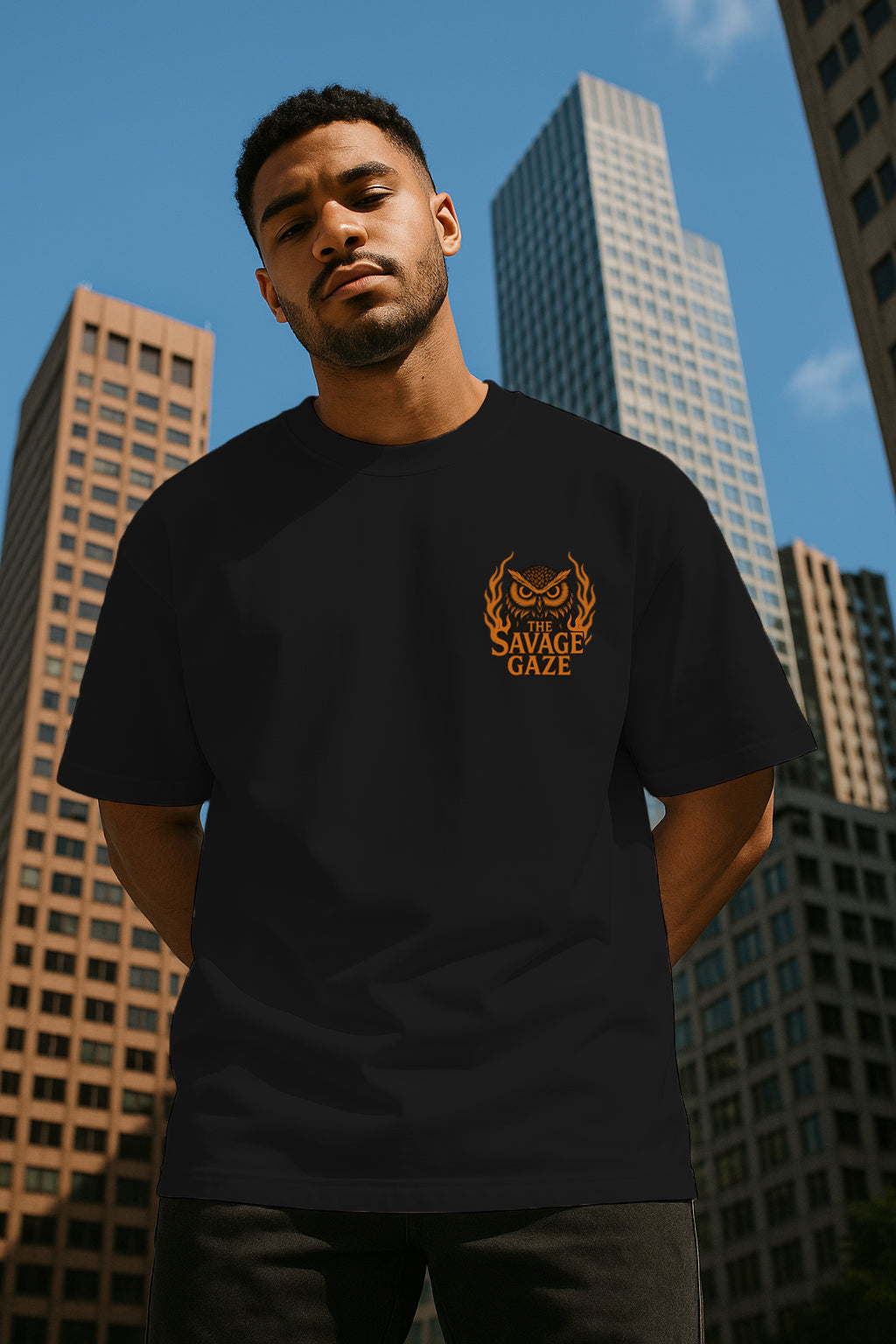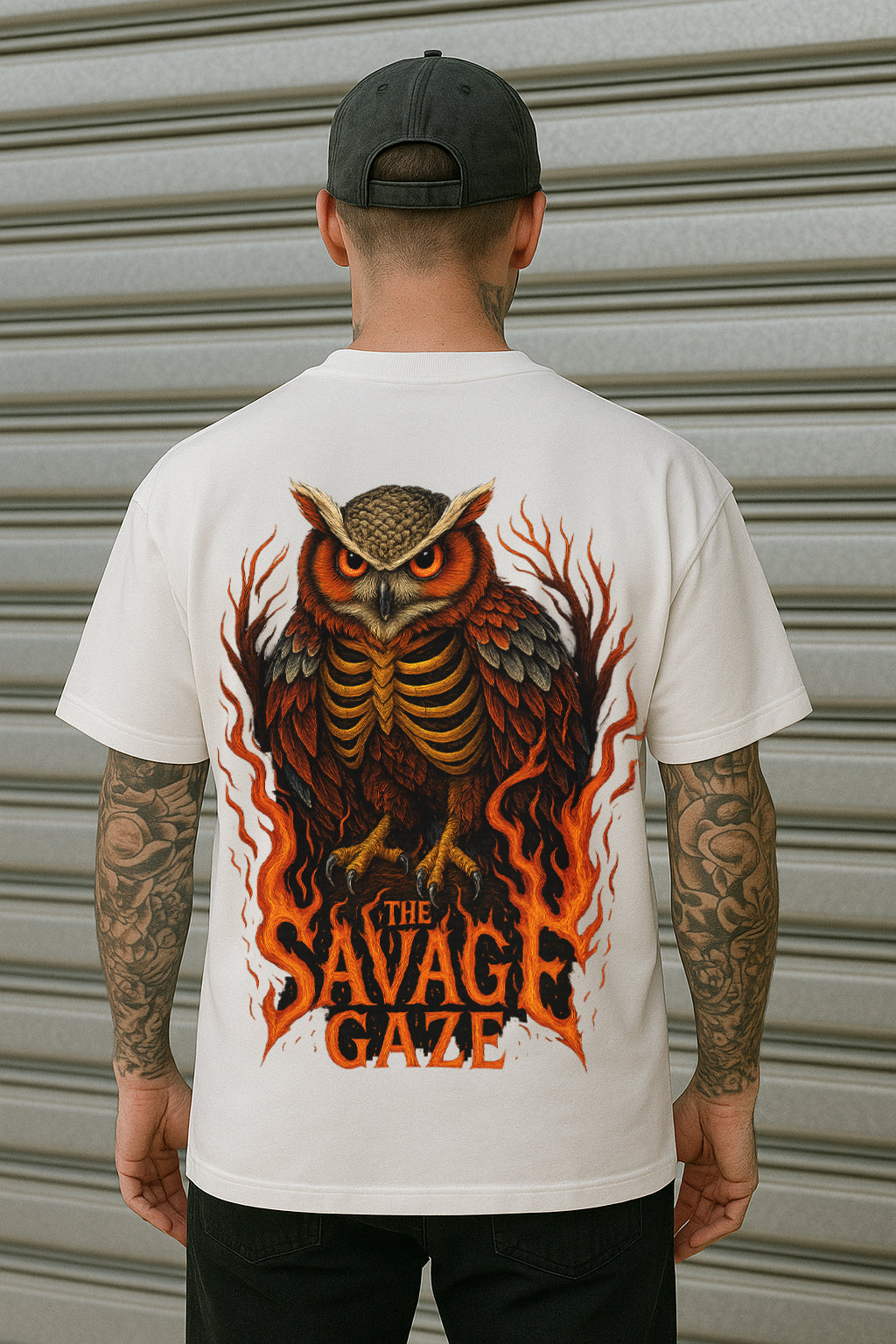 Savage Gaze Owl Oversized Graphic T-Shirt – Streetwear Statement Tee in Premium 240 GSM Terry Cotton