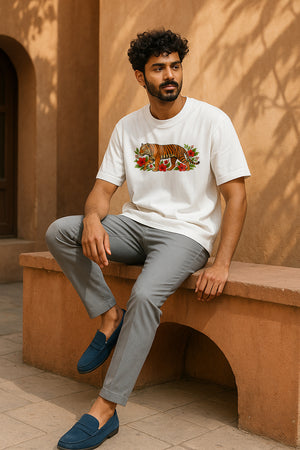 “I picked this tiger graphic oversized T-shirt because every tiger on the back stands for a promise I made to myself—stay brave, lead with heart, and walk my own path. The lone tiger on the front is my reminder: every great journey starts with one steady step.”