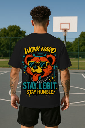 Every legend has a story, and this T-shirt carries one worth sharing. The graphic of the cool bear with shades isn’t just art – it’s a reminder of a street code: Work Hard, Stay Legit, Stay Humble. Inspired by the underground hustle and the culture of never giving up, this design tells the story of those who earn respect by keeping it real.