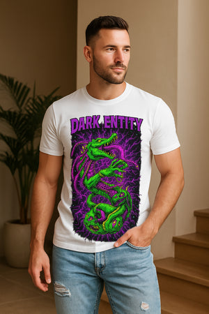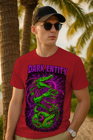 “Dark Entity” Cosmic Horror Monster Graphic T-Shirt – Neon Lightning Art, 100% Cotton Regular Fit Streetwear Tee