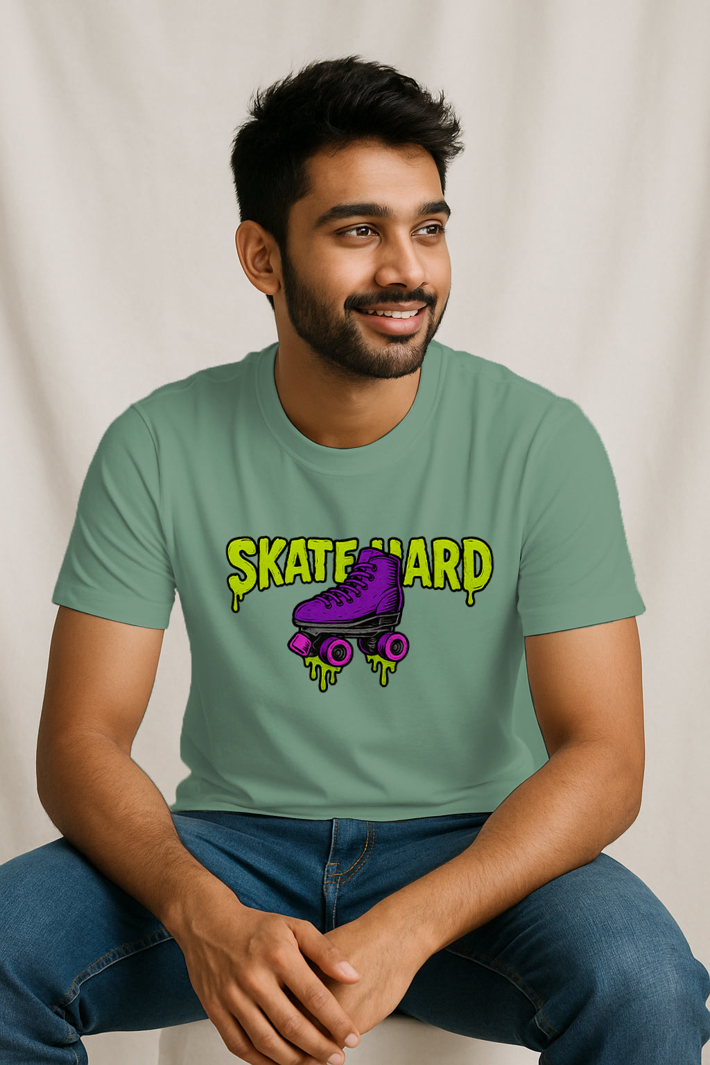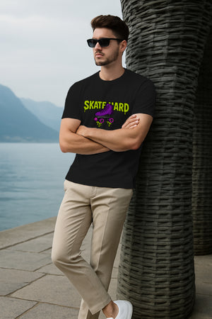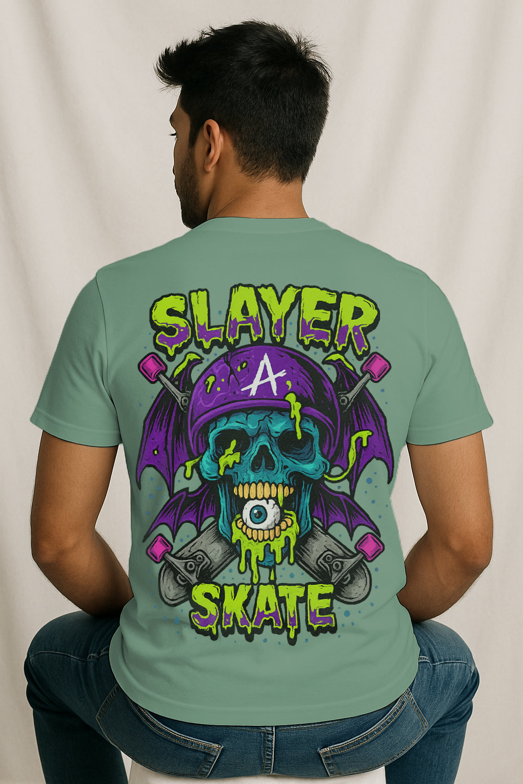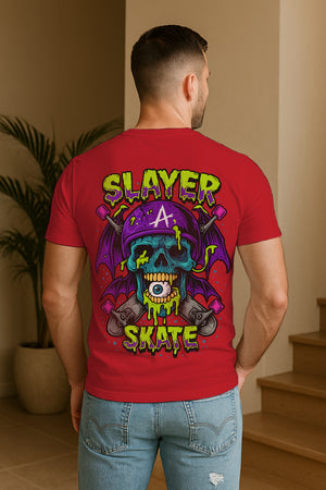 Graphic Slayer Skate T-Shirt | Drippy Skull & Crossed Boards Design, 100% Cotton Regular Fit