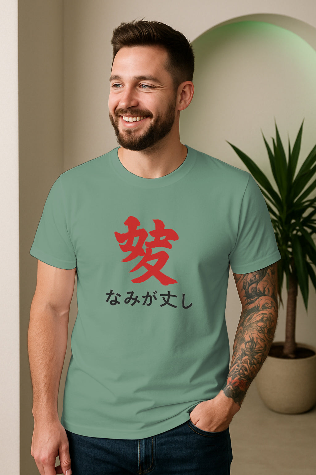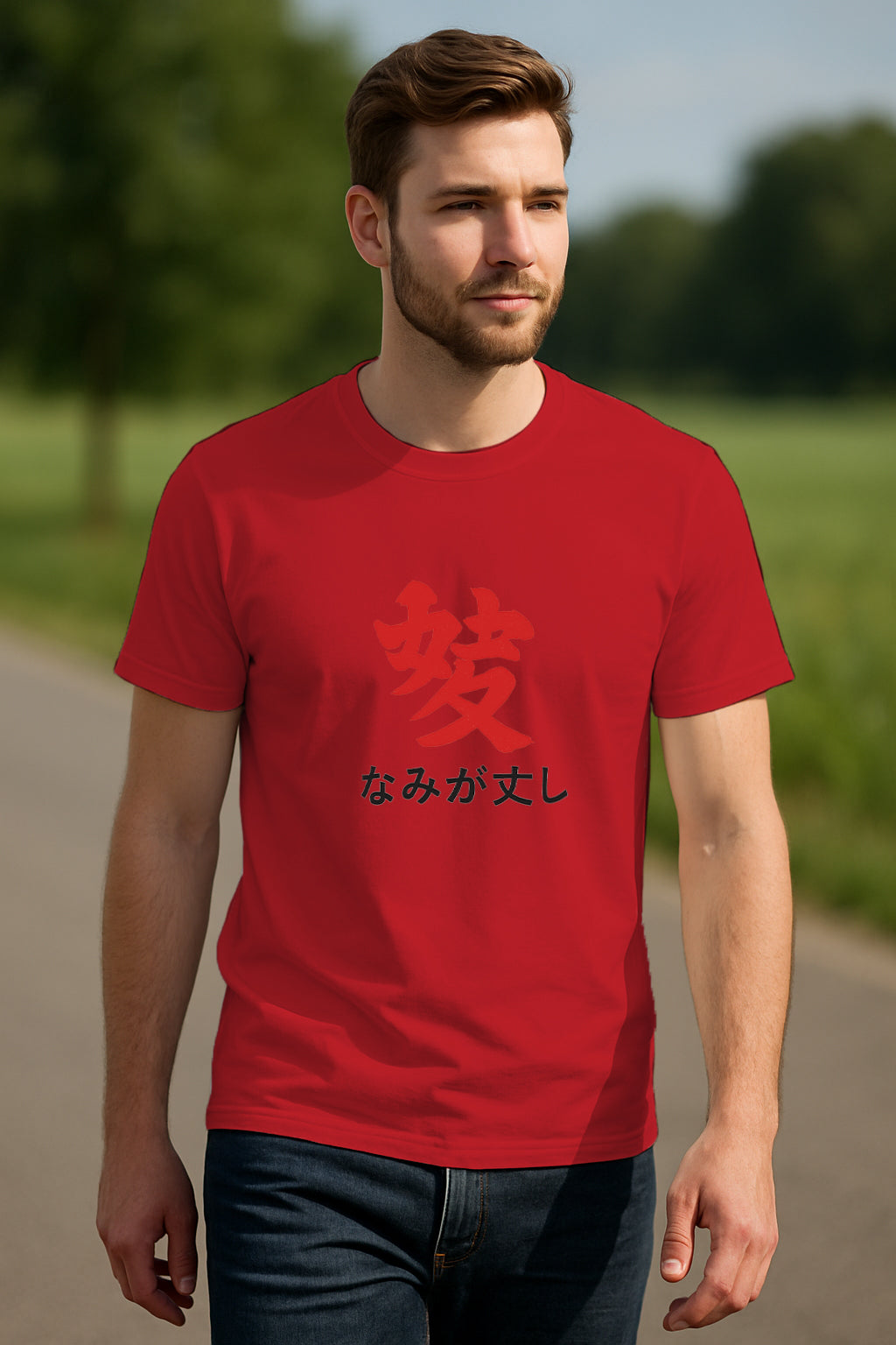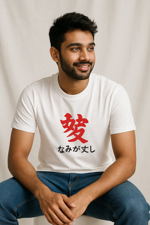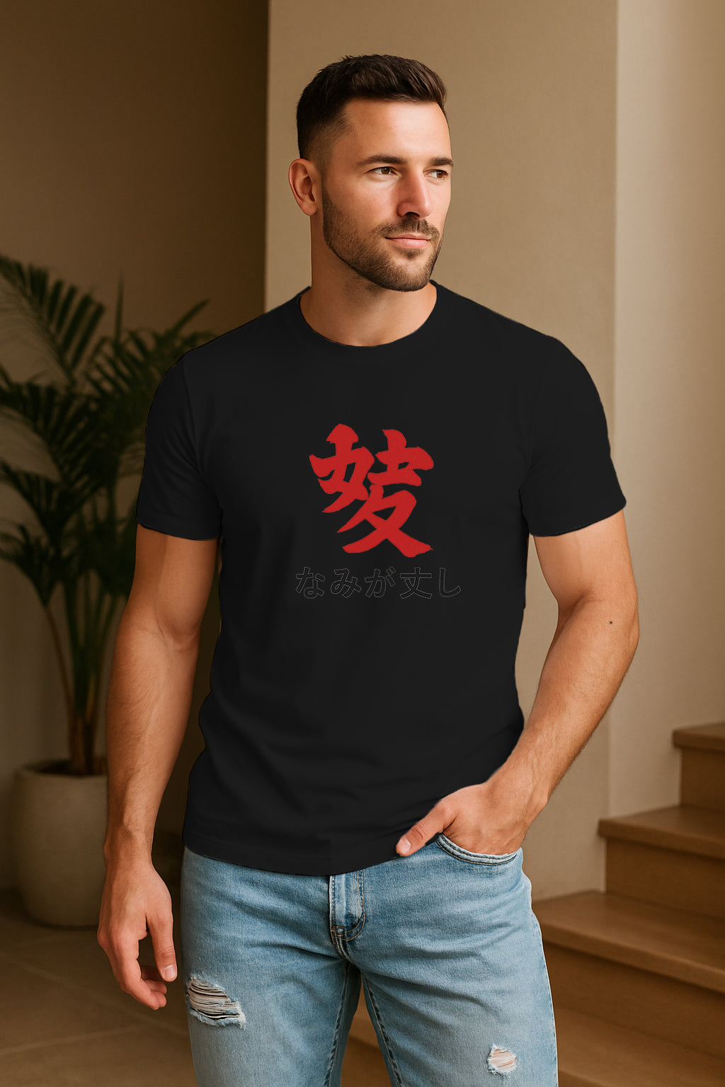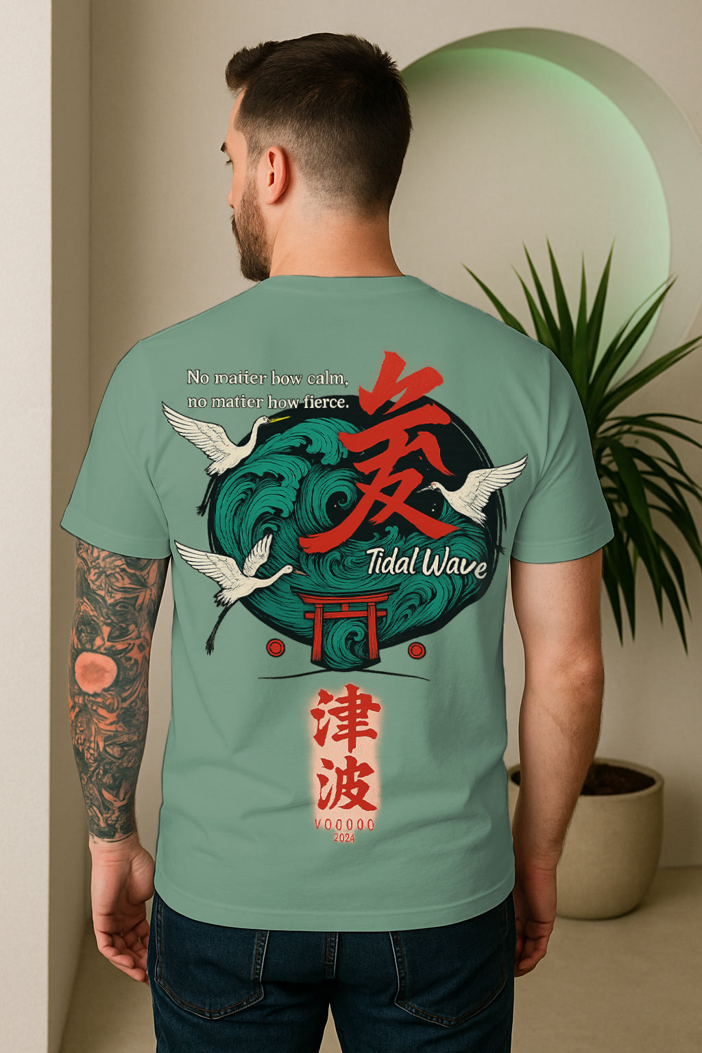 “Tidal Wave” Japanese Back Graphic T-Shirt – Kanji Wave, Torii & Crane Print, 100% Cotton Regular Fit Streetwear Tee