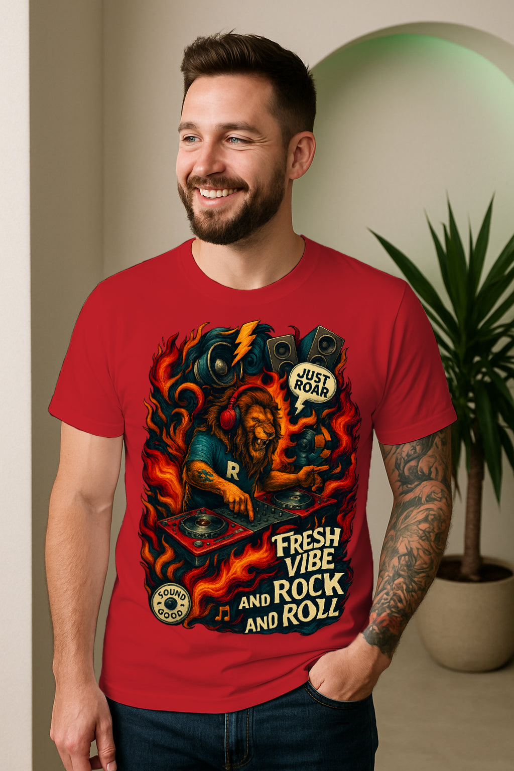 DJ Lion – Fresh Vibe Rock & Roll Graphic T-Shirt (Regular Fit, 100% Cotton)
